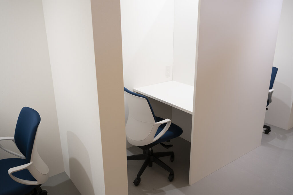 こちらは完全な防音室ではありませんが、パーティションで仕切られた個室スペースを備えています。これにより、外部の音や視線を気にすることなく、仕事や読書に集中できます。