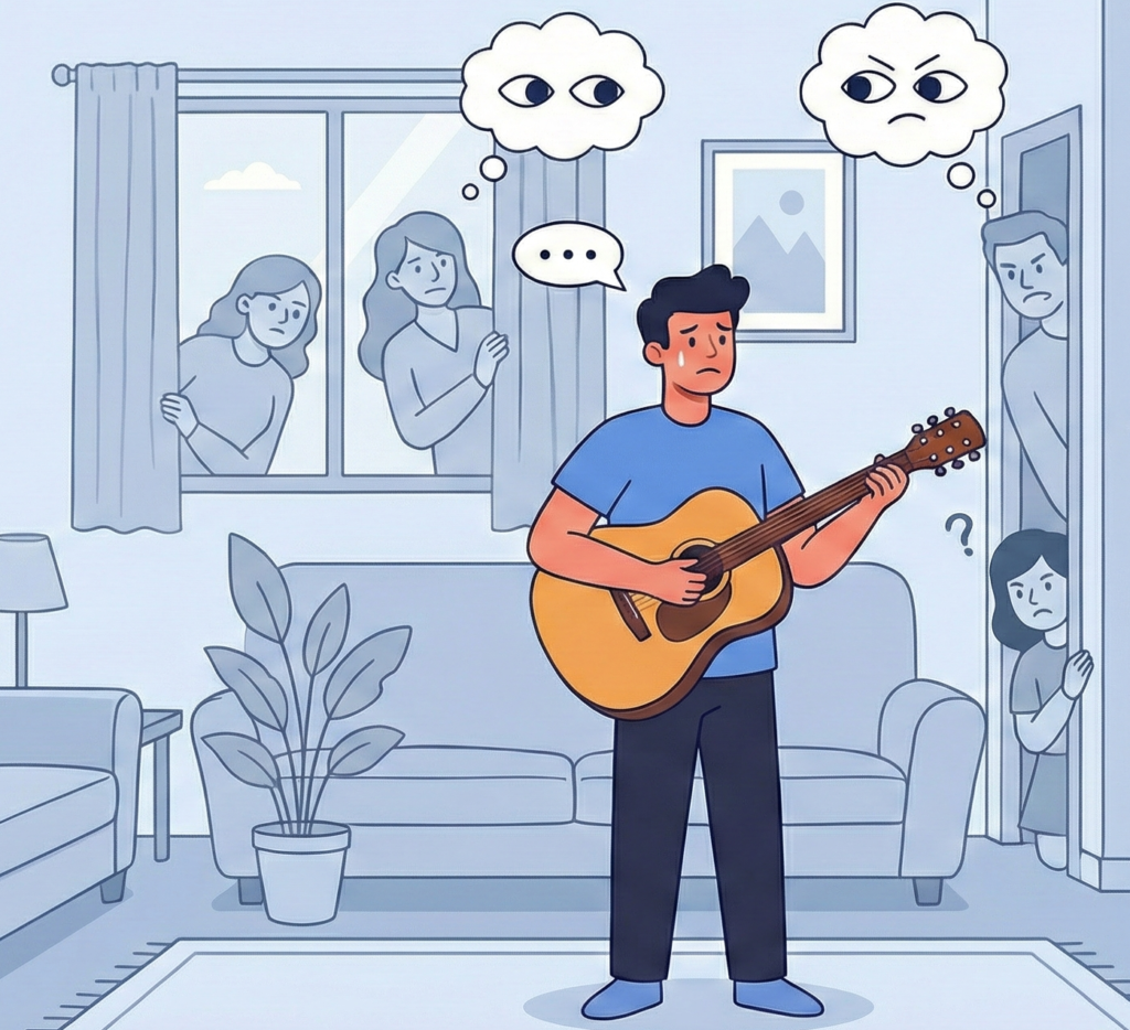 理由1:自宅では「周りの目」が気になり楽器に集中できない